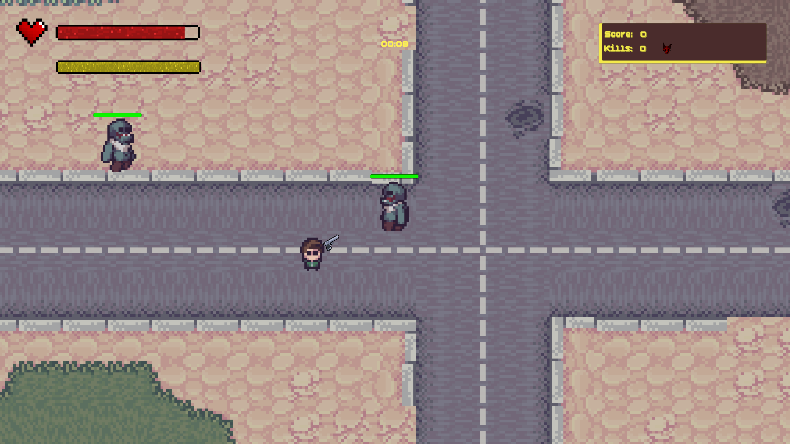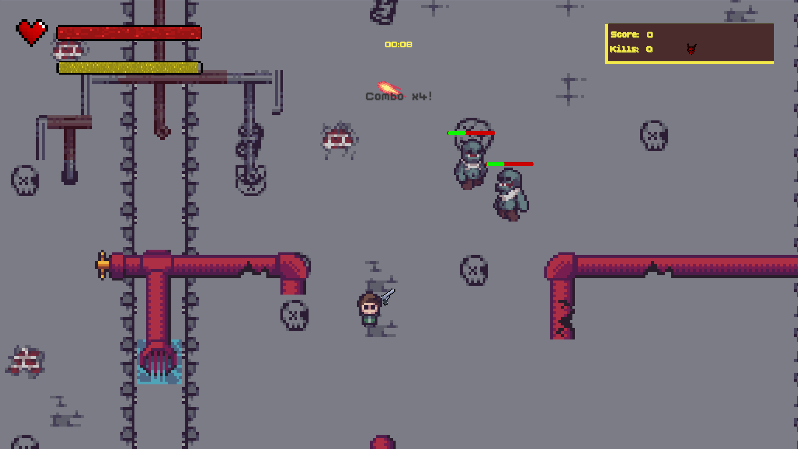 A zombie horde style game where the player has to work around with 1 bullet and a ricocheting mechanic. The higher your chain, the higher your score